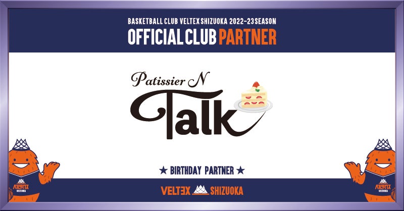 このたび、ベルテックス静岡は、Patissier N Talkとバースデーパートナー契約を新規にて締結し、2022-23シーズンからご支援いただくことになりましたので、下記の通りお知らせいたします。