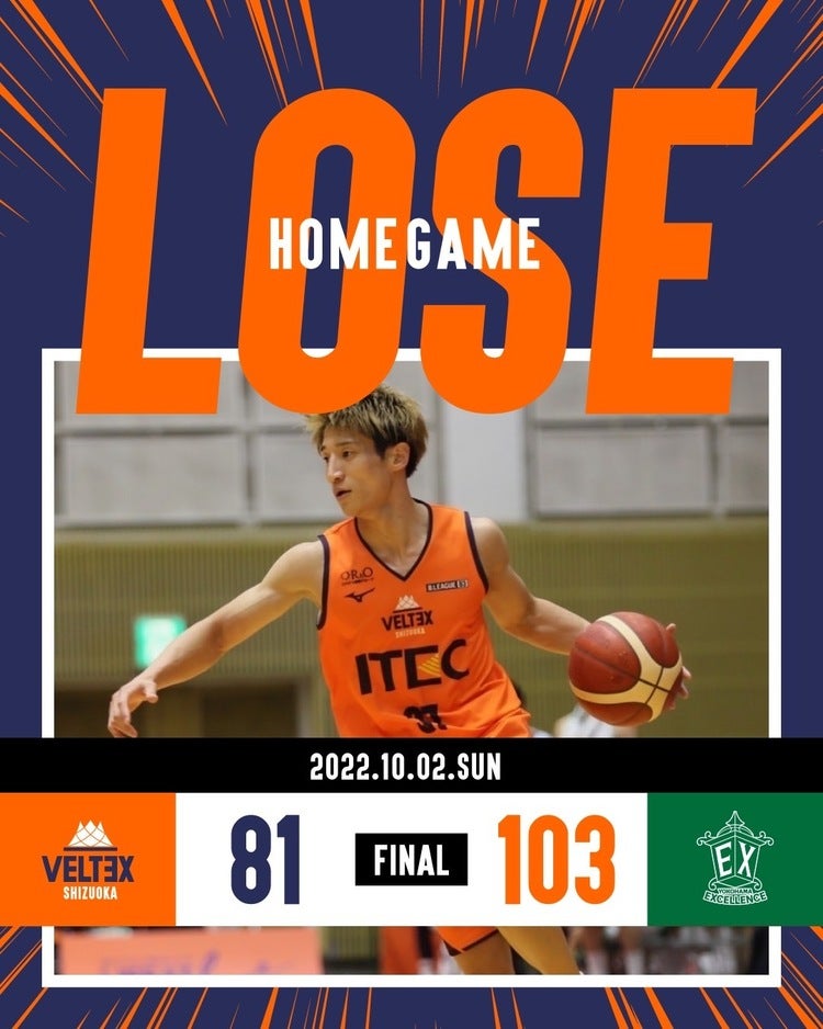 その後、横浜EXの決定力の高いシュートに対して、静岡は上手くディフェンスでアジャストできず最終スコア81-103、22点差で開幕初黒星となった。