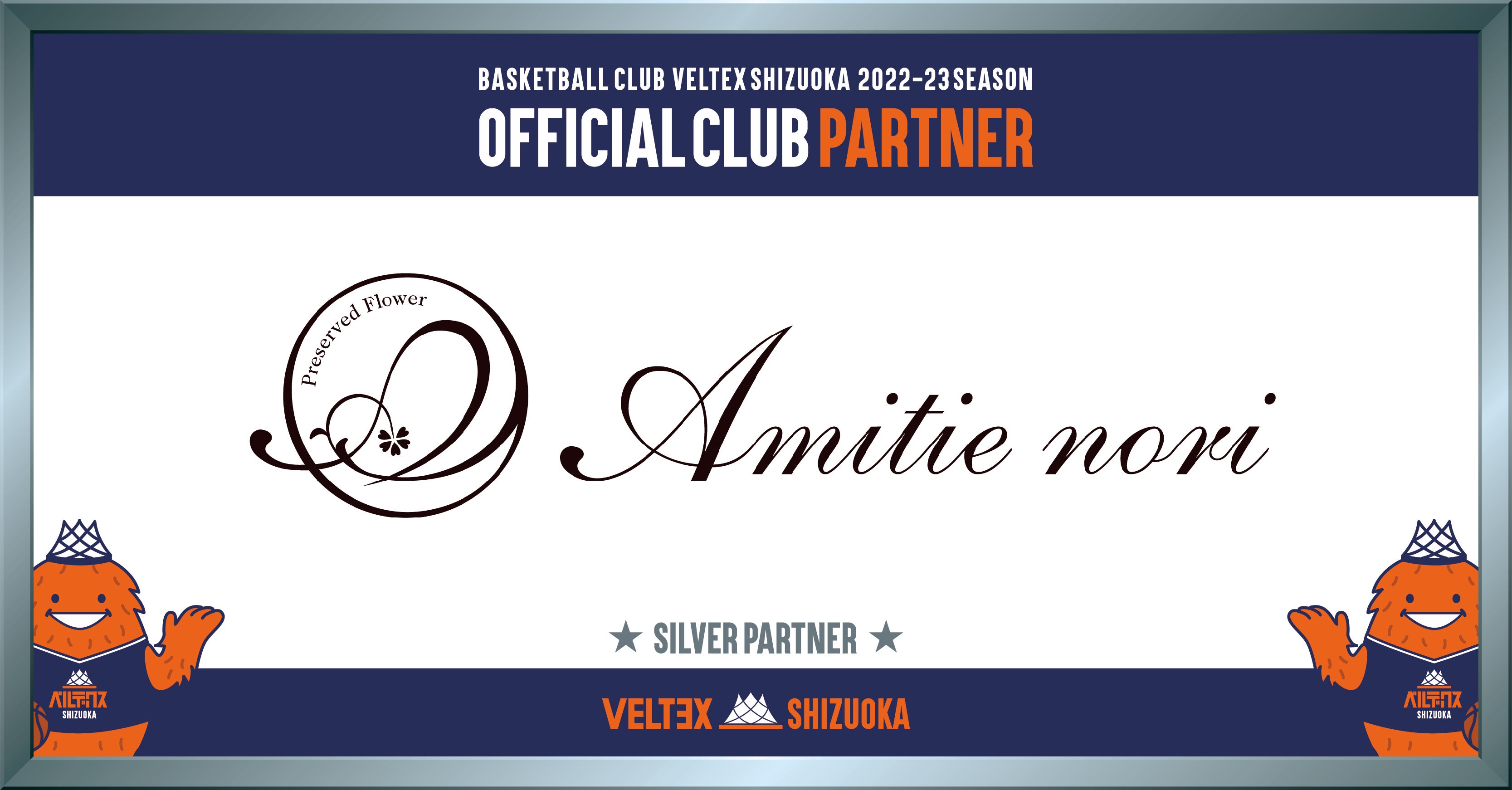 このたび、ベルテックス静岡は、プリザーブドフラワー専門店 Amitie noriとシルバーパートナー契約を新規にて締結し、2022-23シーズンからご支援いただくことになりましたので、下記の通りお知らせいたします。