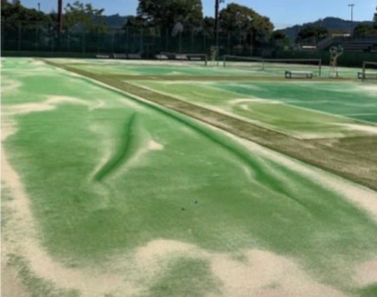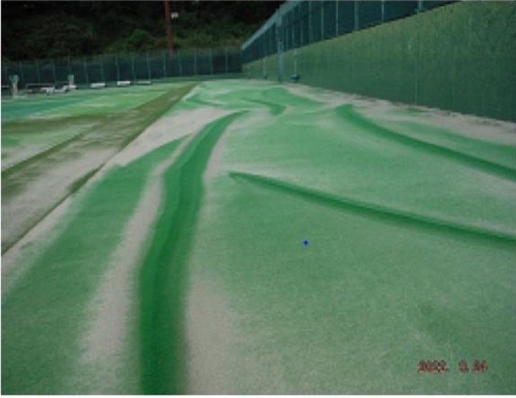 施設内に大量の水が入ったことで、人工芝に隆起や剥がれが発生しました。