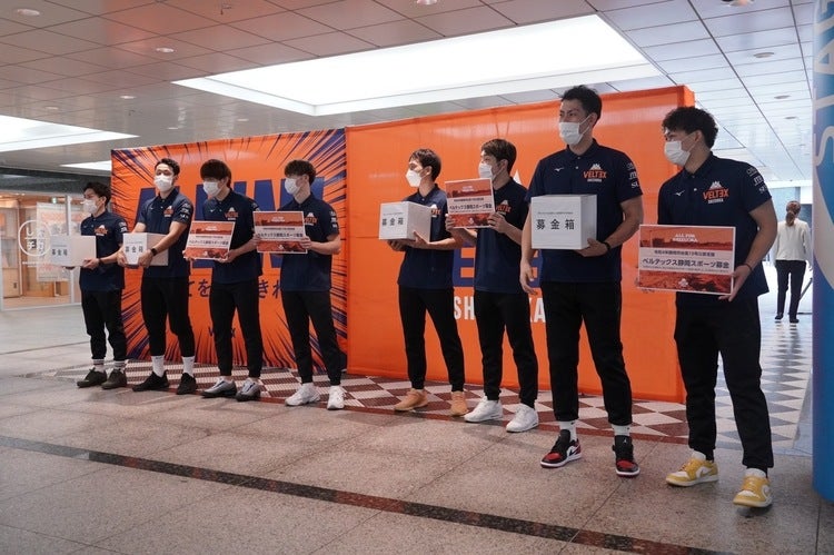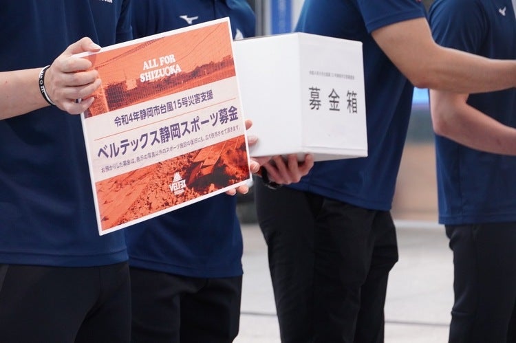 このたび、ベルテックス静岡では、令和4年9月の台風15号により被害を受けた公共スポーツ施設等を対象にその復旧を目的とした「 ベルテックス静岡スポーツ募金 」の受付開始にあたり、今月17日(月)、静岡駅北口地下広場にて街頭での募金活動を実施いたしました。