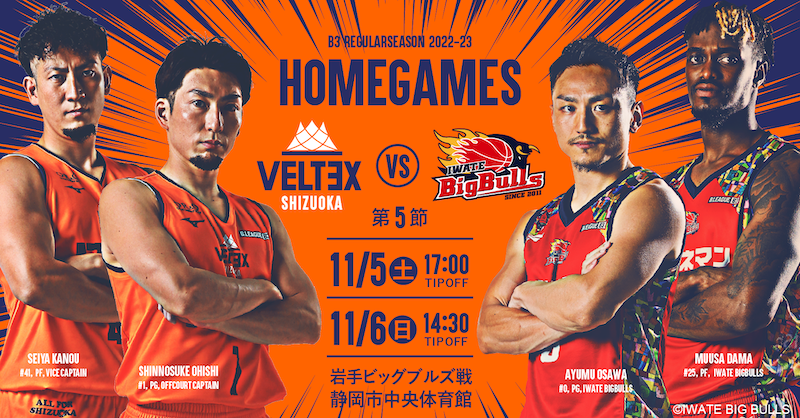 11月5日(土)、11月6日(日)岩手ビッグブルズ戦の開場時刻・タイムスケジュールが決定しましたのでお知らせいたします。