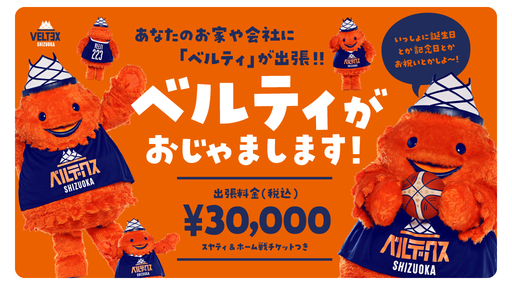 この度、ベルテックス静岡のマスコットキャラクター「ベルティ」が皆様のご自宅や会社に出張する