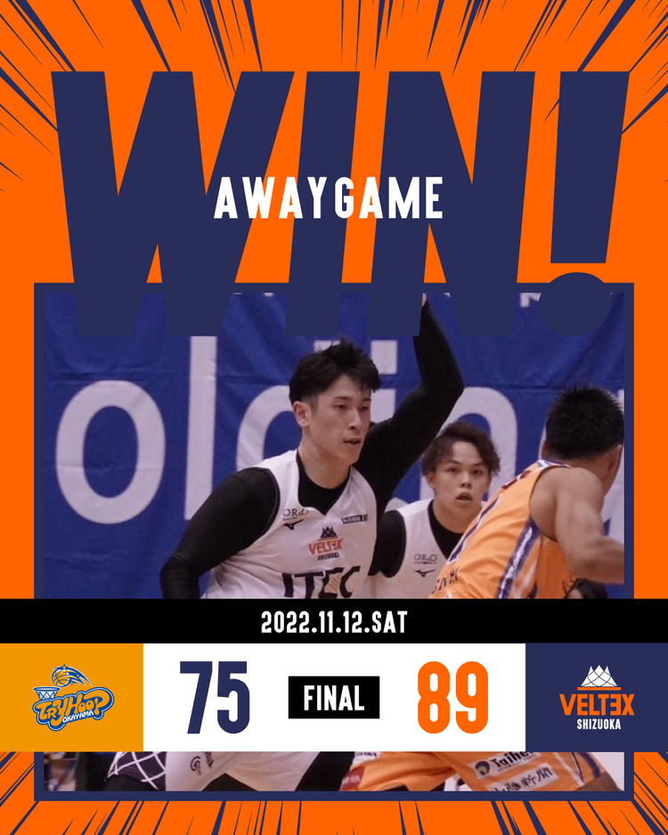 この流れを断ち切りたい岡山はタイムアウトを要求するも、静岡の勢いは止まらない。その後も静岡#8新川のドライブや#3岡田のスリーポイントでさらにリードを広げる。終盤には、静岡#7エールセネルがスリーポイントを沈め、最終スコア75-89で勝利を収め、連勝を9に伸ばした。さらに静岡はこの勝利をもってクラブ史上初となるリーグ戦単独首位となった。