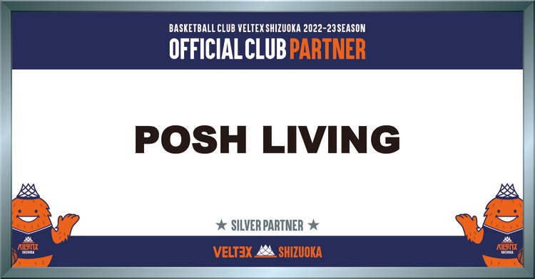 このたび、ベルテックス静岡は、有限会社ポッシュリビングとSILVERパートナー契約を新規にて締結し、2022-23シーズンよりご支援いただくことになりましたので、下記の通り、お知らせいたします。