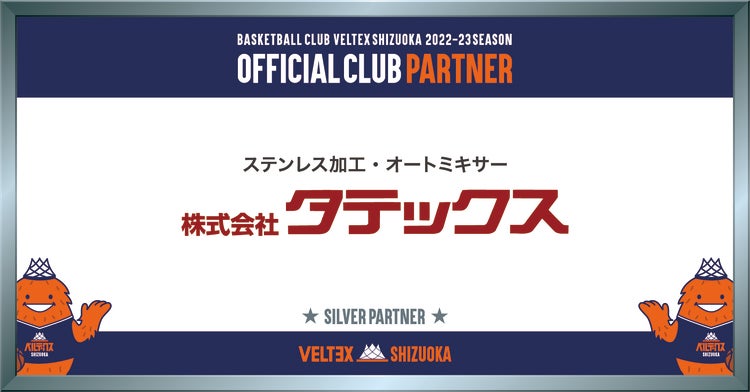 このたび、ベルテックス静岡は、株式会社タテックスとシルバーパートナー契約を継続(増額)にて締結し、2022-23シーズンもご支援いただくことになりましたので、下記の通りお知らせいたします。