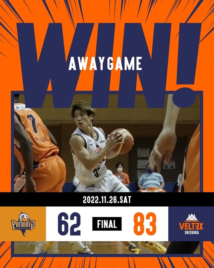 山口ペイトリオッツ 62-83 ベルテックス静岡