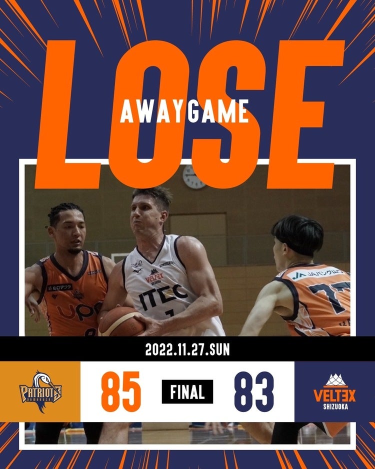 山口ペイトリオッツ 85-83 ベルテックス静岡