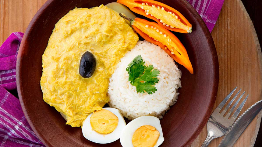 アヒ・デ・ガジナ (ペルー風チキンカレー) 600円/チャンチョ・ア・ラ・ブラサ丼(グリルポーク丼)600円/チチャ・モラダ(紫とうもろこしジュース)600円/ペルーコーラ(黄色ペルー代表的コーラ) 600円/エンパナダ(南米の肉詰めパン)300円/アルファホレ(南米の菓子) 200円