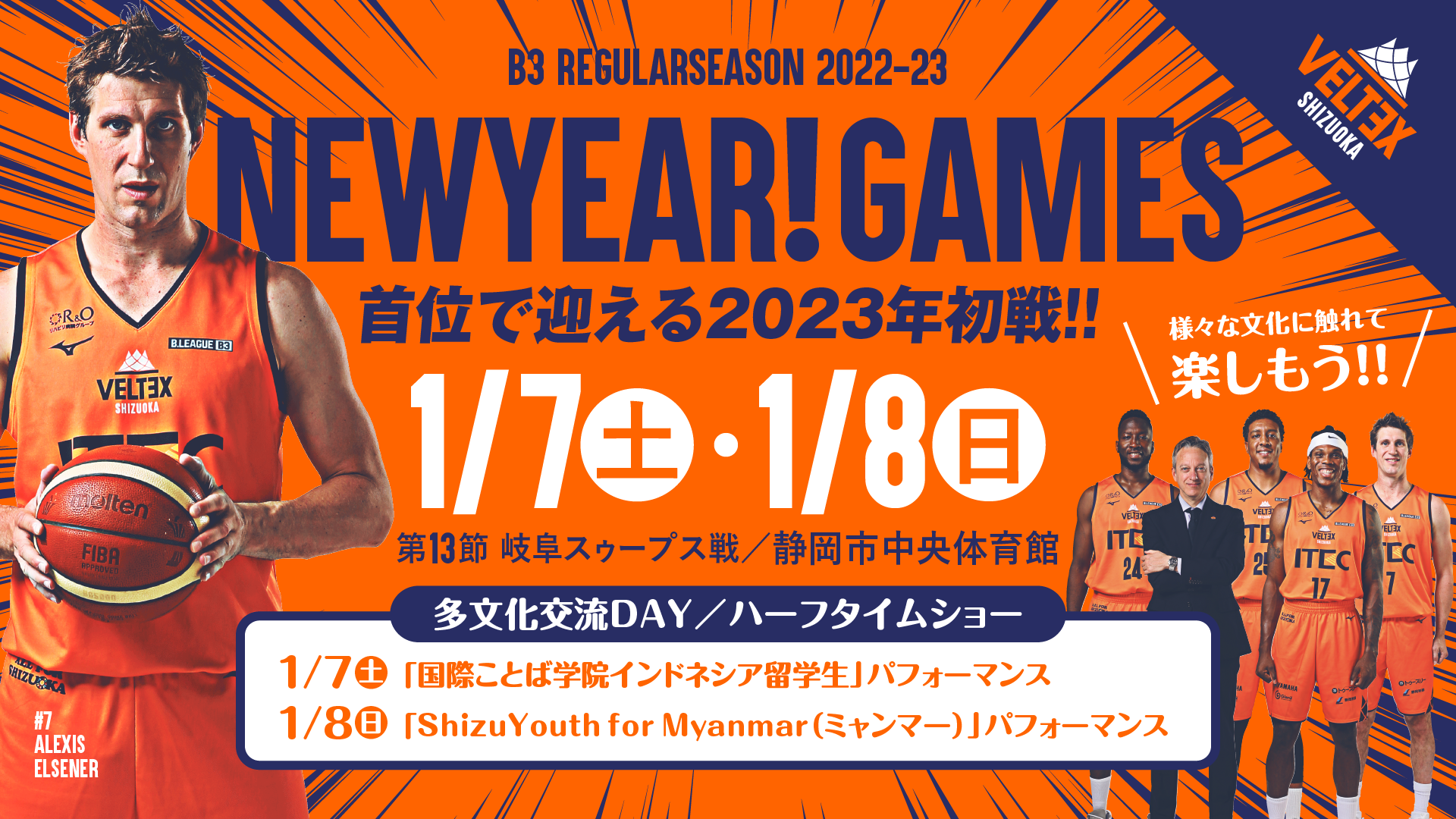 この度、年明け1月7日(土)8日(日)に開催予定の第13節岐阜スゥープス戦にて、92か国、11,300人の外国籍の人々が暮らす街・静岡市と連携し「多文化交流デー」と題した、交流イベントを実施します(詳細は後日発表いたします)。