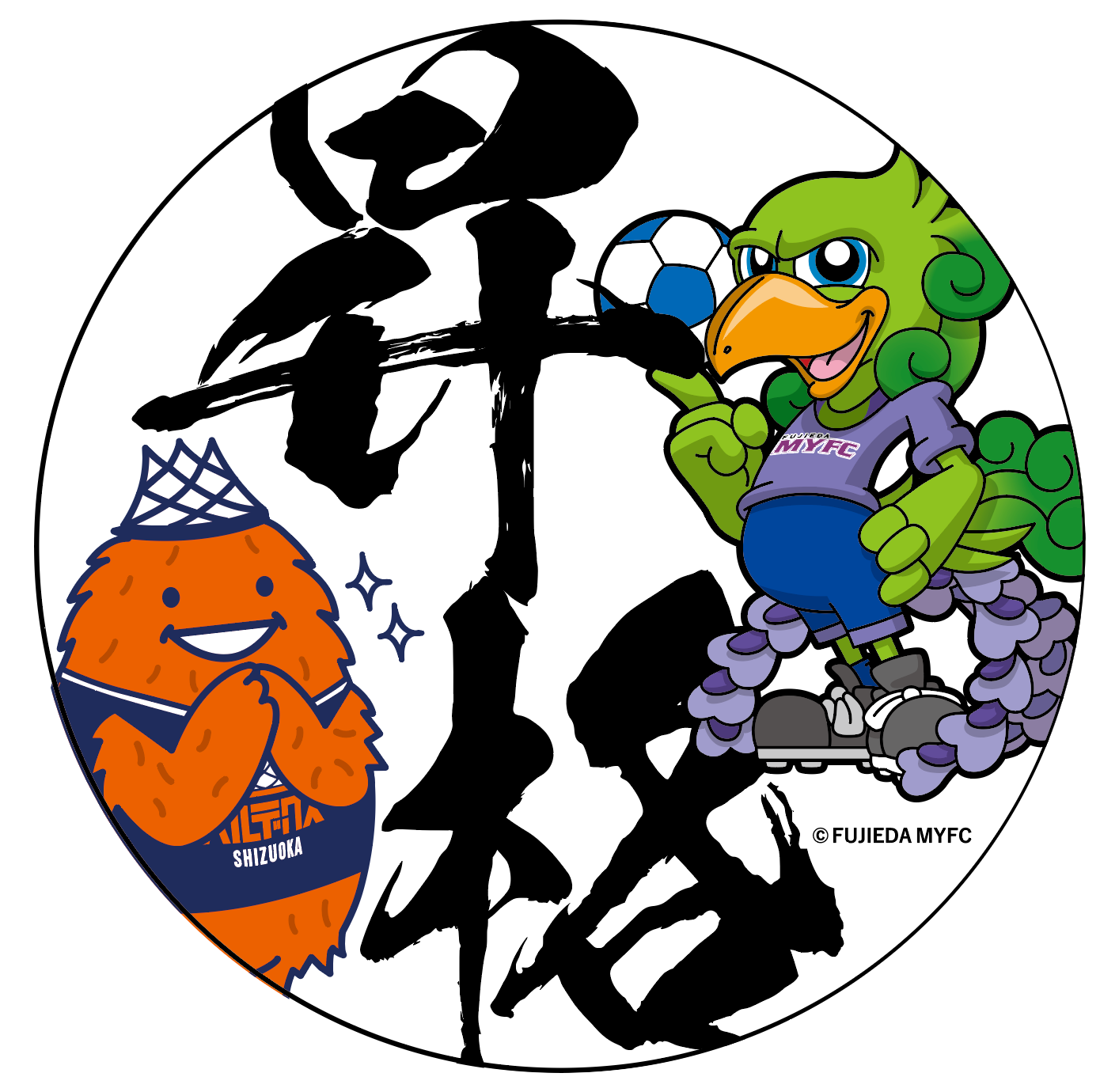 藤枝MYFCの来場を記念して昇格あやかりステッカーを両日先着500名様に配布いたします!
