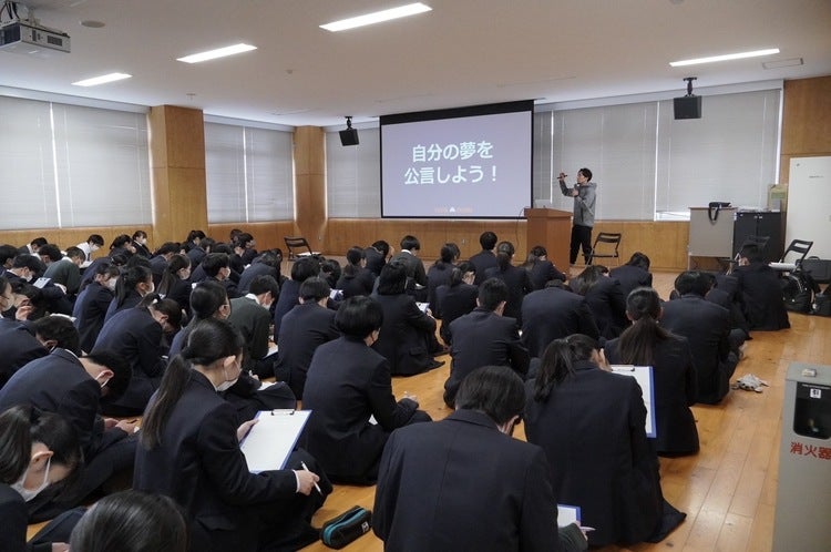 1月18日(水) #1 大石慎之介 選手が静岡県立駿河総合高等学校の高校1年生243名を対象に「これまでのキャリアとこれから」をテーマにキャリア教育における特別講演を行いました。