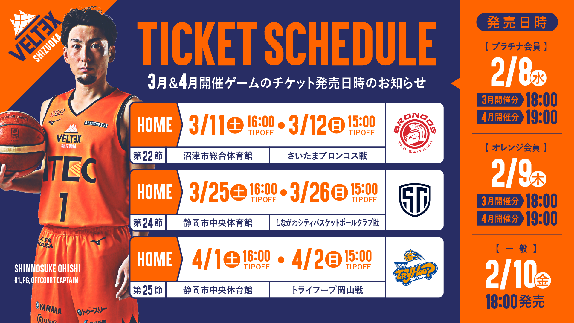 B3 REGULARSEASON 2022-23 3月・4月開催のベルテックス静岡ホームゲームのチケット販売が2月8日(水)よりスタートいたします。