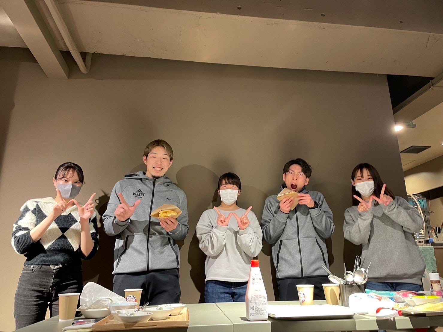 ▲コラボフードの試作に#1大石選手と#3岡田選手も参加!選手たちの貴重な意見をもとに企画を進めてきました。