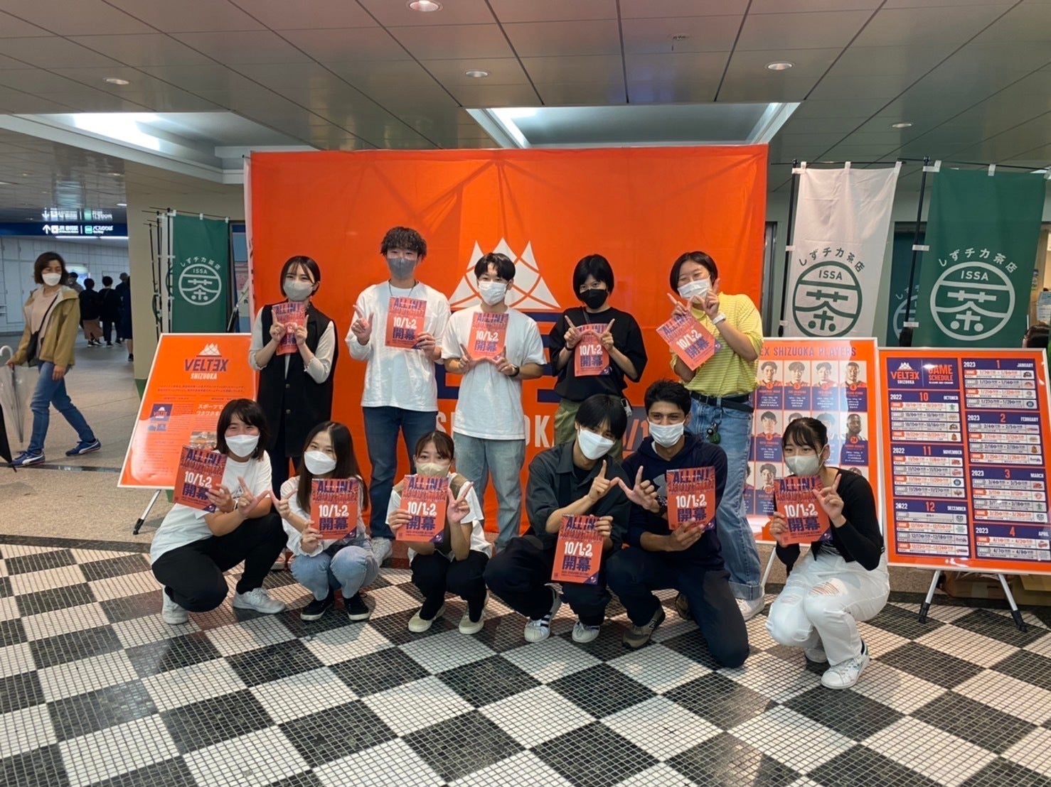 ▲ミーティング以外の活動も!初顔合わせでバスケをして仲を深めたり、開幕戦前にはチラシ配布を学生たちが手伝ってくれました。