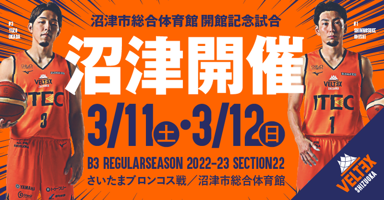 9日(木)ベルテックス静岡は、3月11日(土)、12日(日)に沼津市民体育館(令和5年3月1日 新体育館 開館予定)にて開催されるB3リーグ レギュラーシーズン 第22節 さいたまブロンコス戦「沼津市総合体育館 開館記念試合」に向け、沼津市を表敬訪問しました。