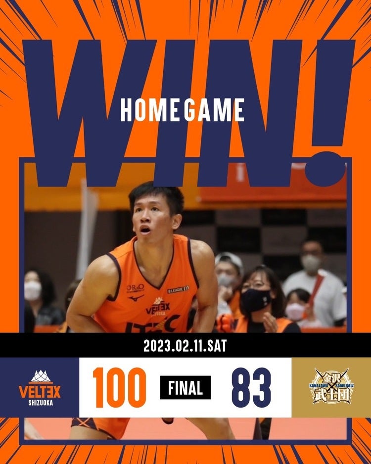 第4クォーター。序盤金沢に連続ポイントを許してしまうも、静岡#7エールセネルがディフェンスの裏を突いたプレーで得点をあげると、続く#4グラヒタがドライブで仕掛けアンドワンから3点プレーを成功させると、この勢いに続き、#8新川がコーナースリーポイントを沈めた。その後も#4グラヒタがドライブで仕掛け#8新川が合わせ得点をあげるなど更にリードを奪う。終盤には#12福田のスリーポイントが決まり、最後まで勢いを緩めることなく静岡がアグレッシブに戦い最終スコア、100-83で勝利を掴んだ。