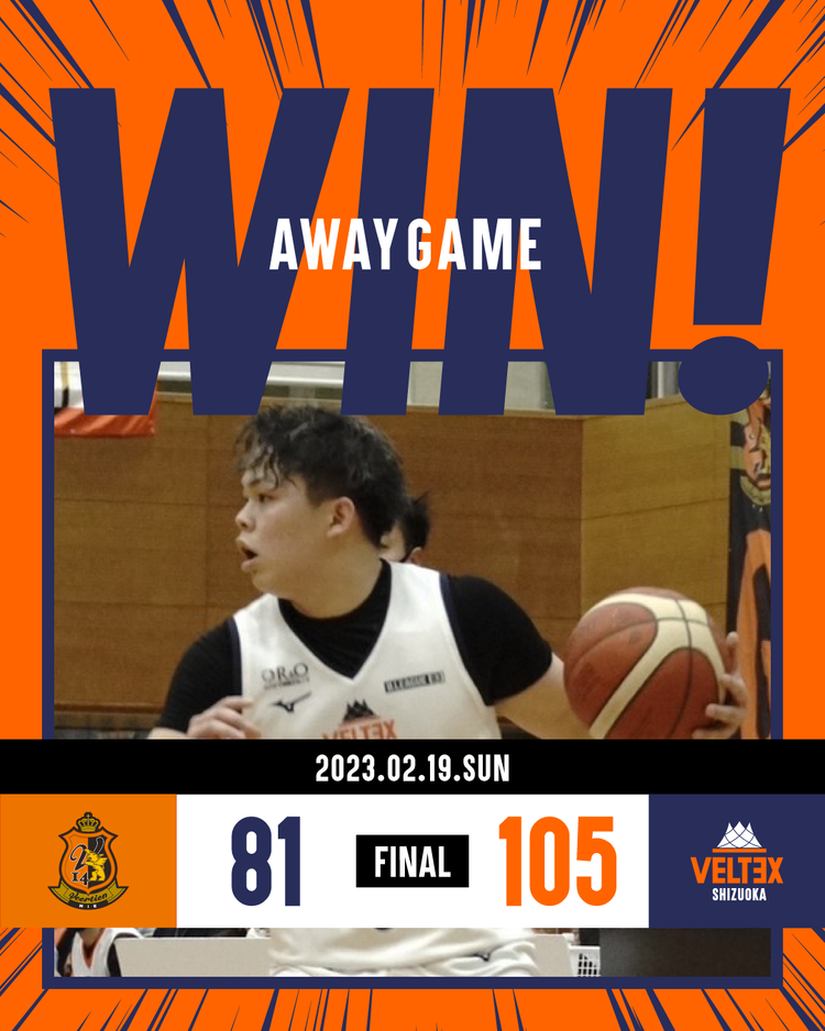 第4クォーター。立ち上がりから一気に三重にペースを奪われる。#5アーティソン、#15粂に連続得点を許し点差を詰められたところで静岡は早い段階でタイムアウトを余儀なくされる。ようやく落ち着きを取り戻した静岡は、#8新川が躍動。与えられたフリースローをきっちり決めると、2本のスリーポイントを沈める。さらにディフェンスではブロックショットを決めるなど攻守で活躍をみせる。この活躍から息を吹き返した静岡は#3岡田のドライブなどで最後まで手を緩めることなく攻め続け、最終スコア81-105、シーズンハイスコアを記録し見事勝利。連勝を7に伸ばした。