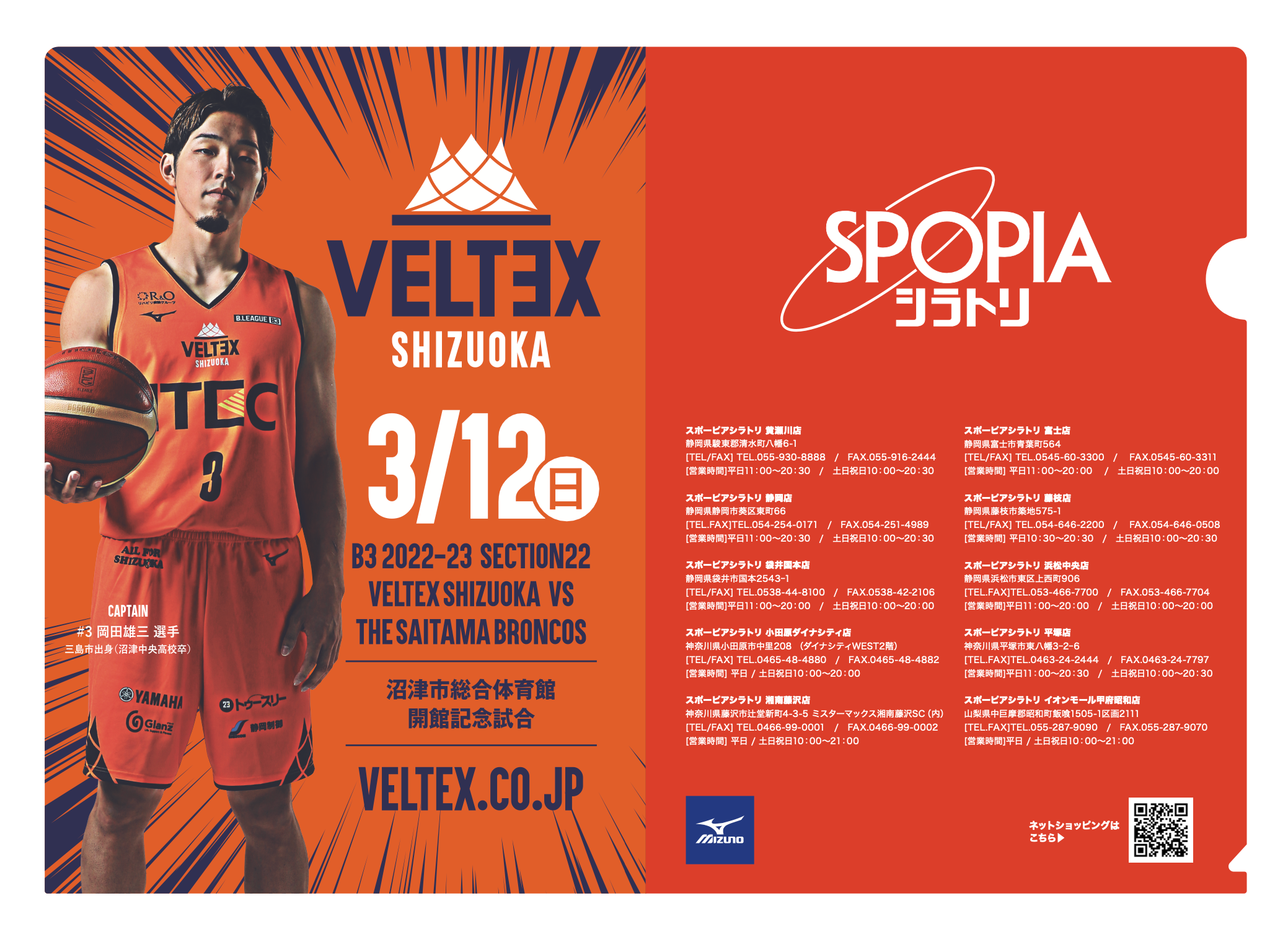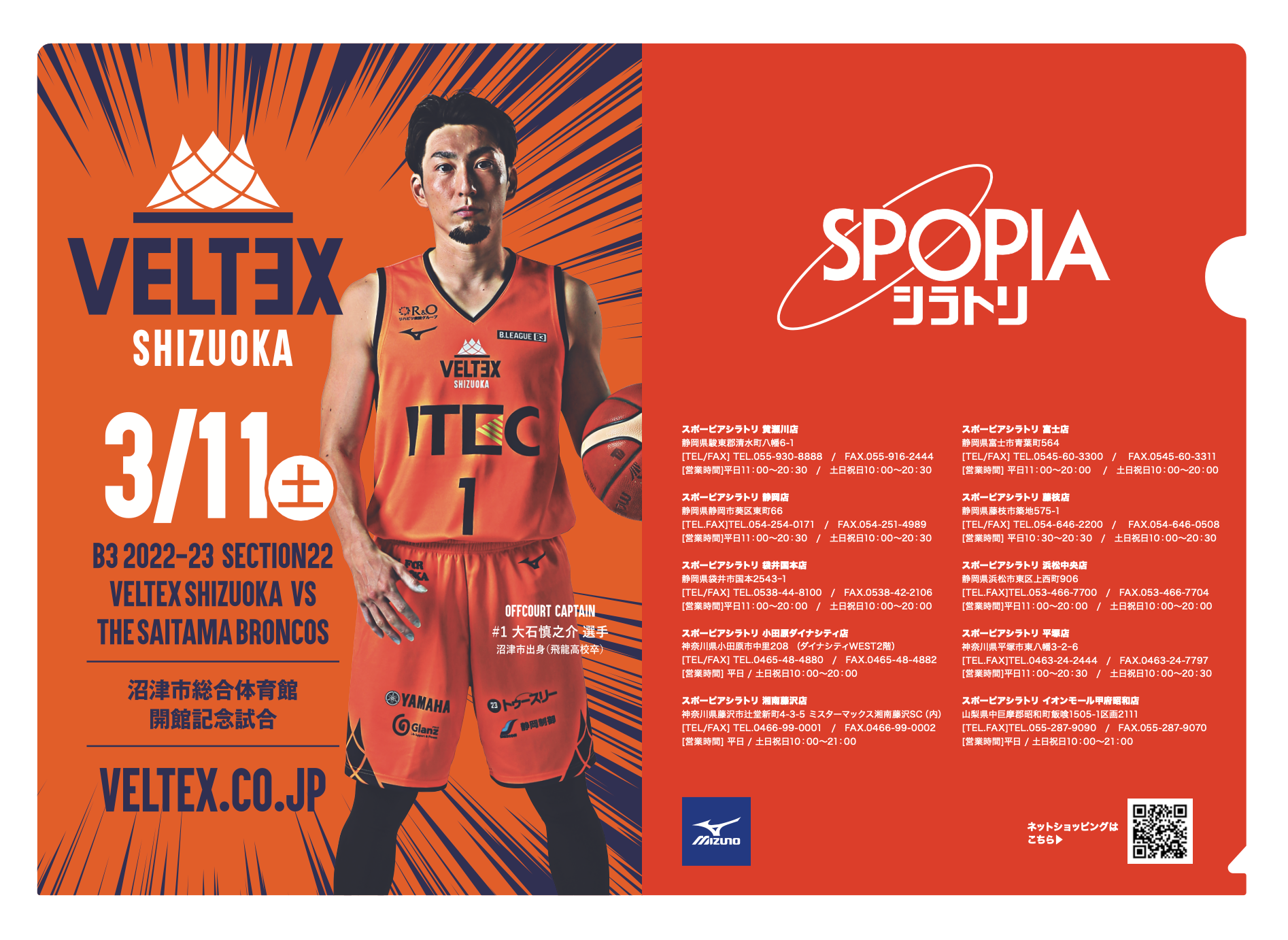 沼津市総合体育館開館記念試合ポスタークリエイティブのA4クリアファイル(協賛:SPOPIAシラトリ様 協力:ミズノ様)を先着各2,000名様にプレゼントします!