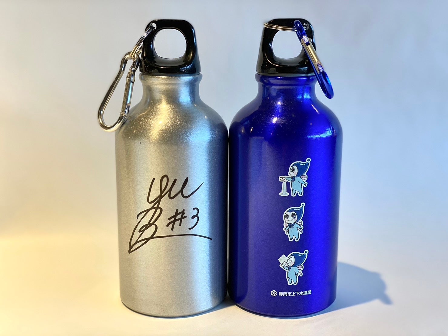さらにボトル缶の裏面に当選シールが貼られていた方は、水のキャラクター「しずみぃ」のアルミニウムスポーツボトル缶を選手のサイン入りでプレゼントいたします。(各日100名)