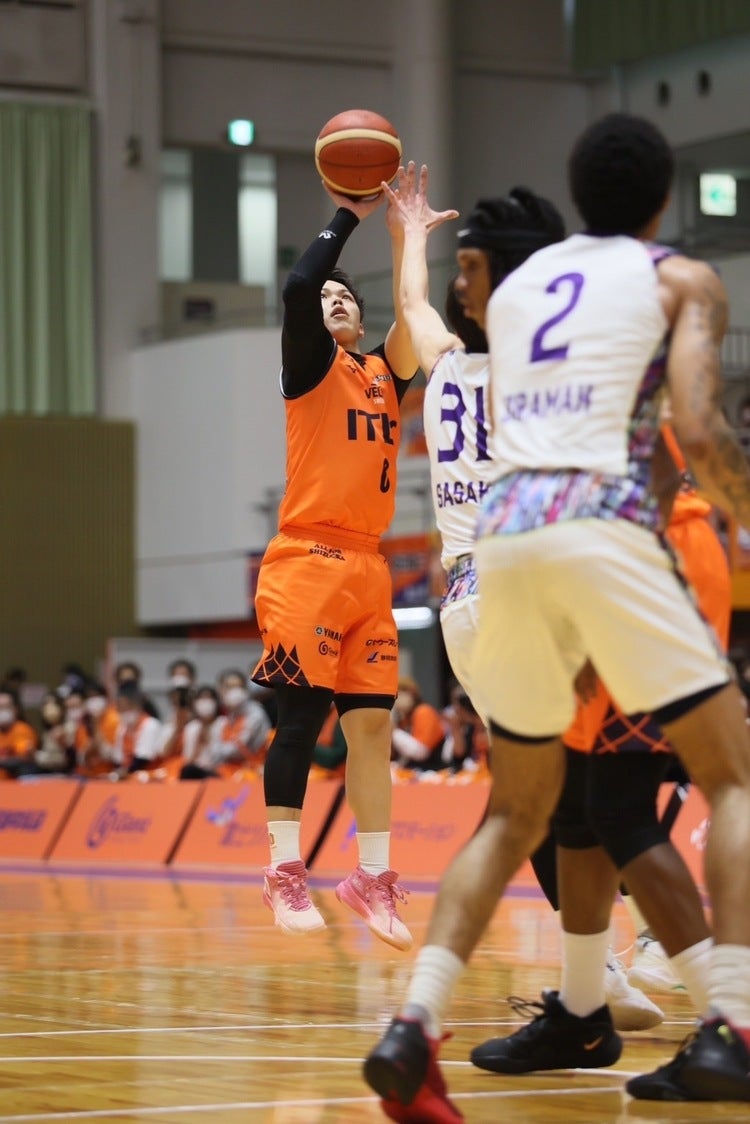 個人的には今、新川選手の出場がない中でボールを扱う時間が長くなっています。その状況の中で、周りを活かすことだったり、ドライブを仕掛けたり、自分の持ち味を積極的にコートで表現できたと思っています。また、今自分自身スリーポイントの調子もいいですし、状況に応じてタバリオ選手とのピックアンドロールを使って得点も取れているので、個人的には良い感覚でプレーできていると思います。