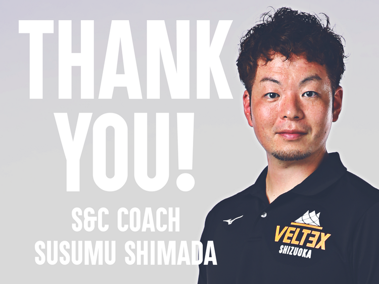 この度、ベルテックス静岡では、嶋田進 ストレングス&コンディショニングコーチの契約が、満了となりますことをお知らせいたします。