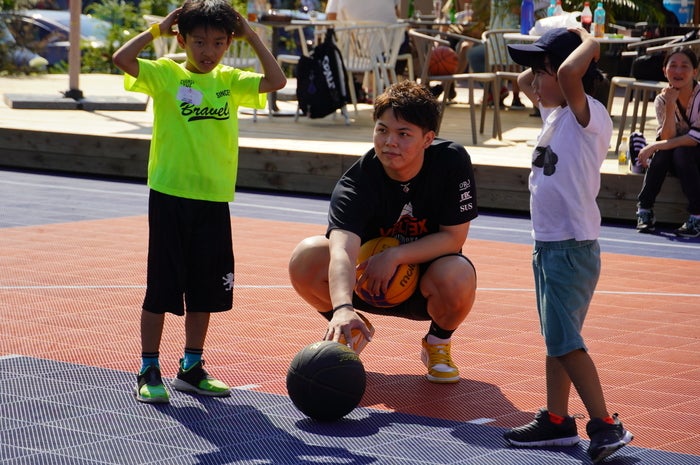 今日だけでもいろんなスポーツを体験し、日頃からもいろんなスポーツを楽しんでいると思いますが、みんなが一番大好きになるのはバスケットボールだと嬉しいです!