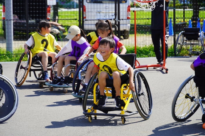 当日は、54名の子どもたちが4グループに分かれ、1日を通してバスケットボール、スケートボード、車いすバスケ、ヘキサスロン(遊びプログラム)の4種目を体験していただきました。