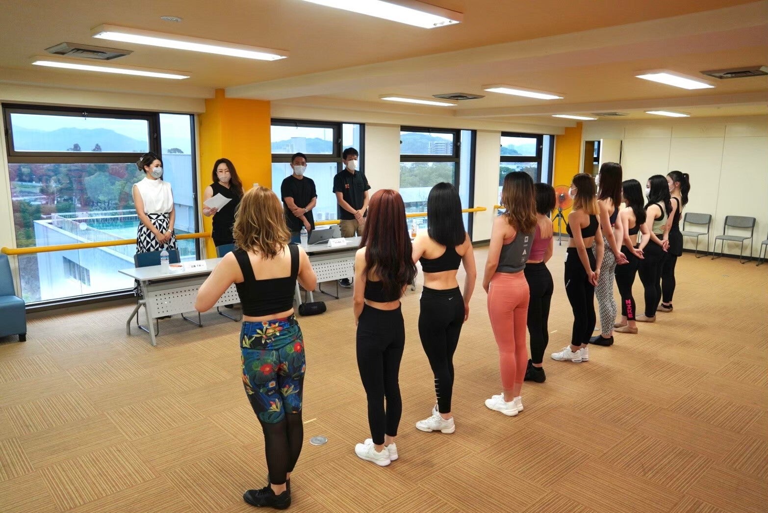 ボディラインがわかる上下セパレートの衣装、シューズ、飲み物、メイク道具(審査前にお化粧直しの時間を設けます)
