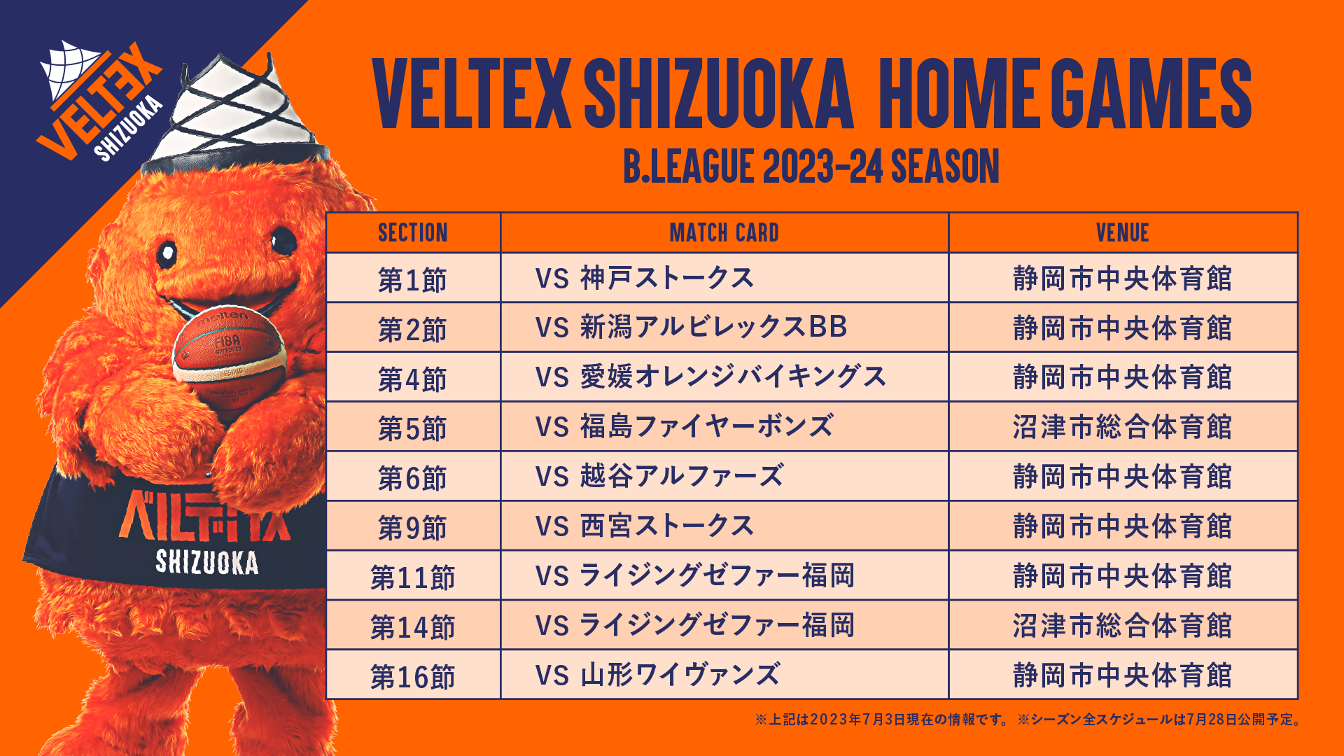 B.LEAGUE 2023-24 SEASON ホーム開幕節の試合情報および、リーグ前半戦のスケジュール(対戦カードおよび会場)が決定しましたのでお知らせします。