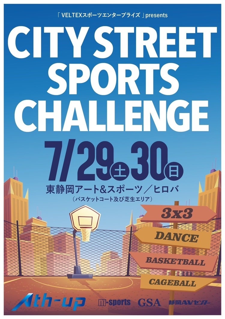 2023年7月29日(土)30日(日)の2日間に3x3バスケットボール、ストリートダンスバトル、ケージボールを中心としたストリートスポーツイベントを東静岡アート&スポーツ/ヒロバにて開催いたします。