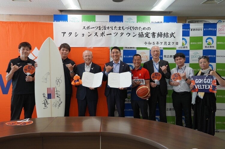 この度、ベルテックス静岡では、牧之原市と「スポーツを活かしたまちづくりのためのアクションスポーツタウン協定」を締結し、7月27日(木)締結式を実施しました。
