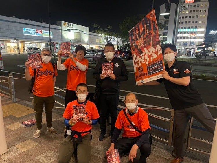 ▲ホームゲームでは、フロントスタッフと共に、チラシ配布にもご協力いただきました!@沼津駅前