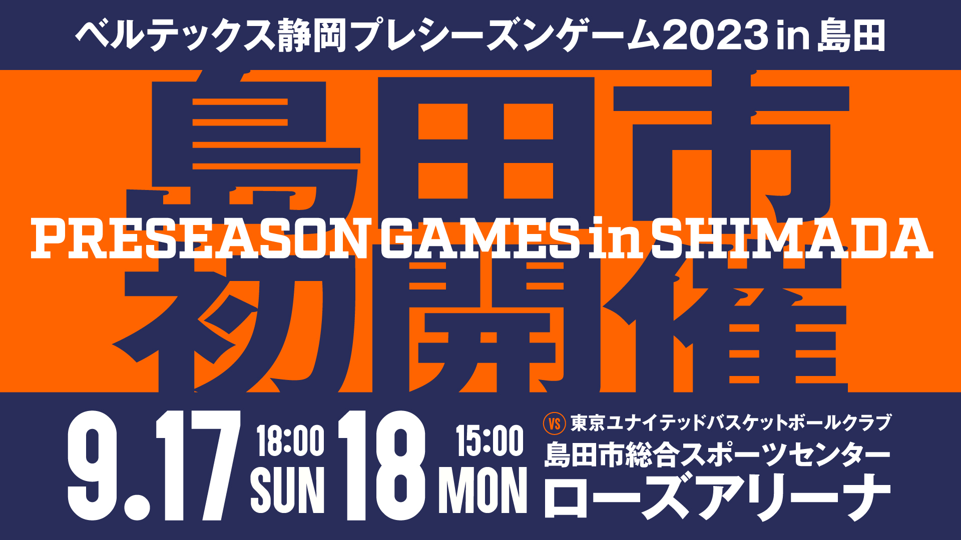 B.LEAGUE 2023-24シーズン開幕に向け、2023年9月17日(日)、18日(祝月)の2日間、ローズアリーナ(島田市)にてプレシーズンゲームを開催することとなりましたのでお知らせします。