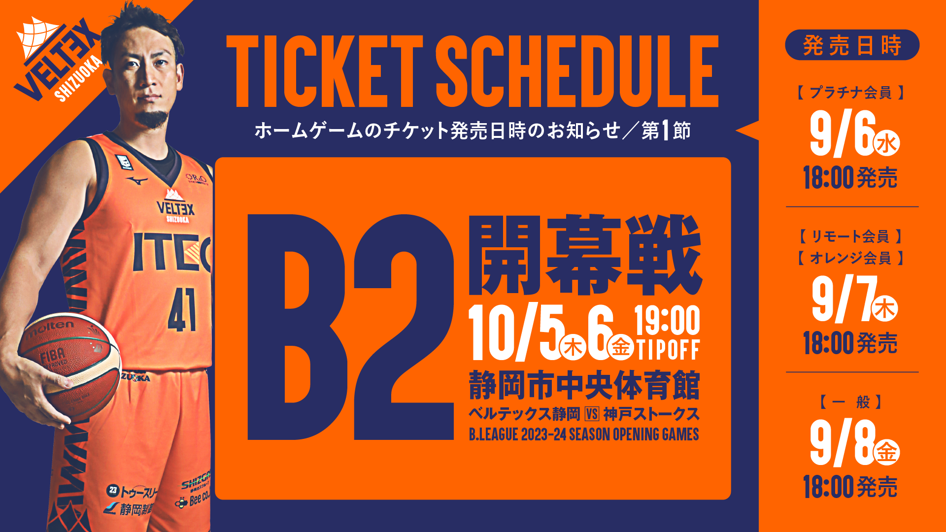 B2開幕戦となる10月5日(木)・6日(金)開催の第1節のチケット販売についてご案内いたします。