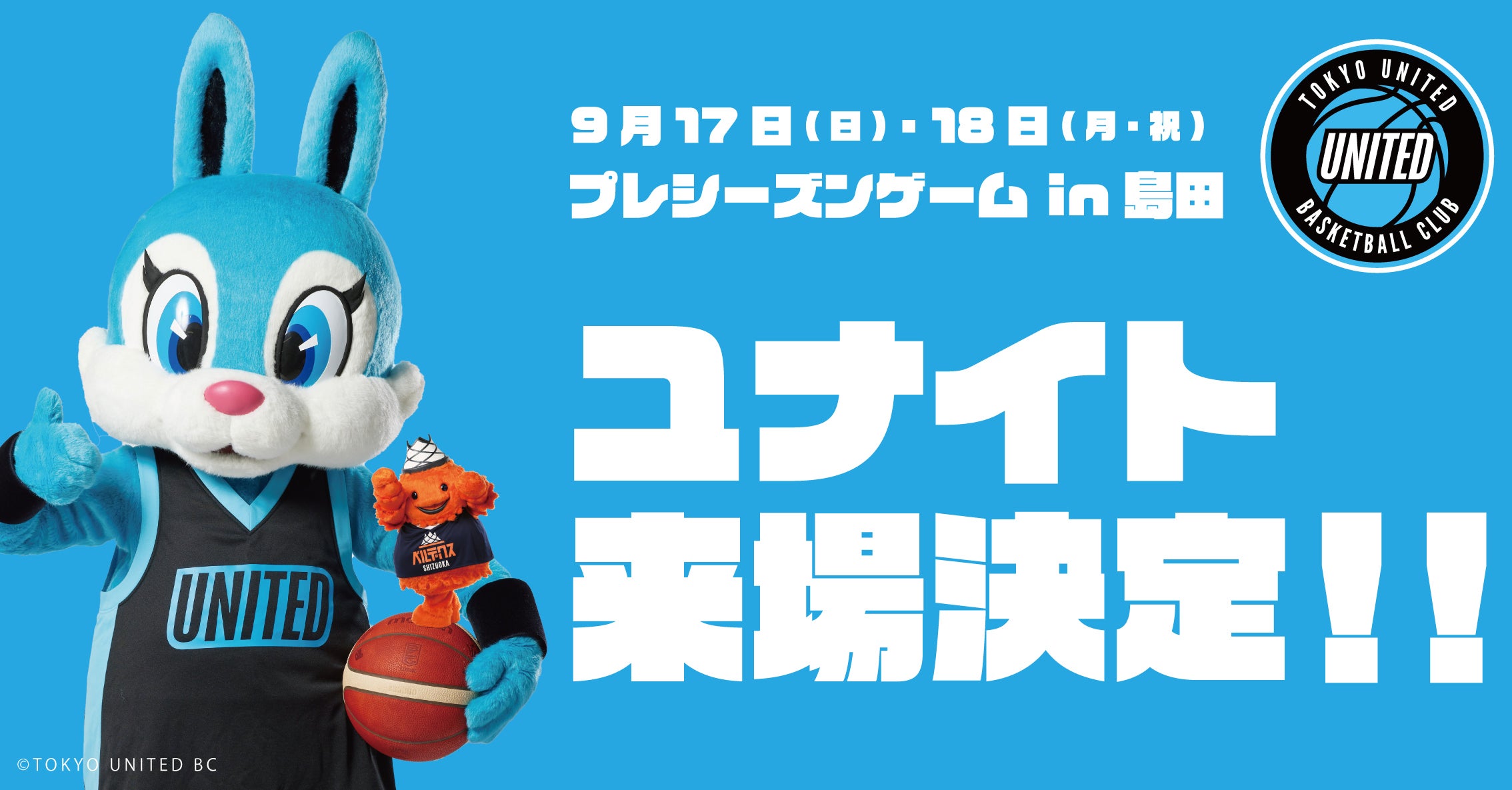 9月17日(日)・18日(月・祝)に開催されますプレシーズンゲームvs東京ユナイテッドバスケットボールクラブ戦にて、TUBCのマスコットキャラクター「ユナイト」の来場が決定いたしました!