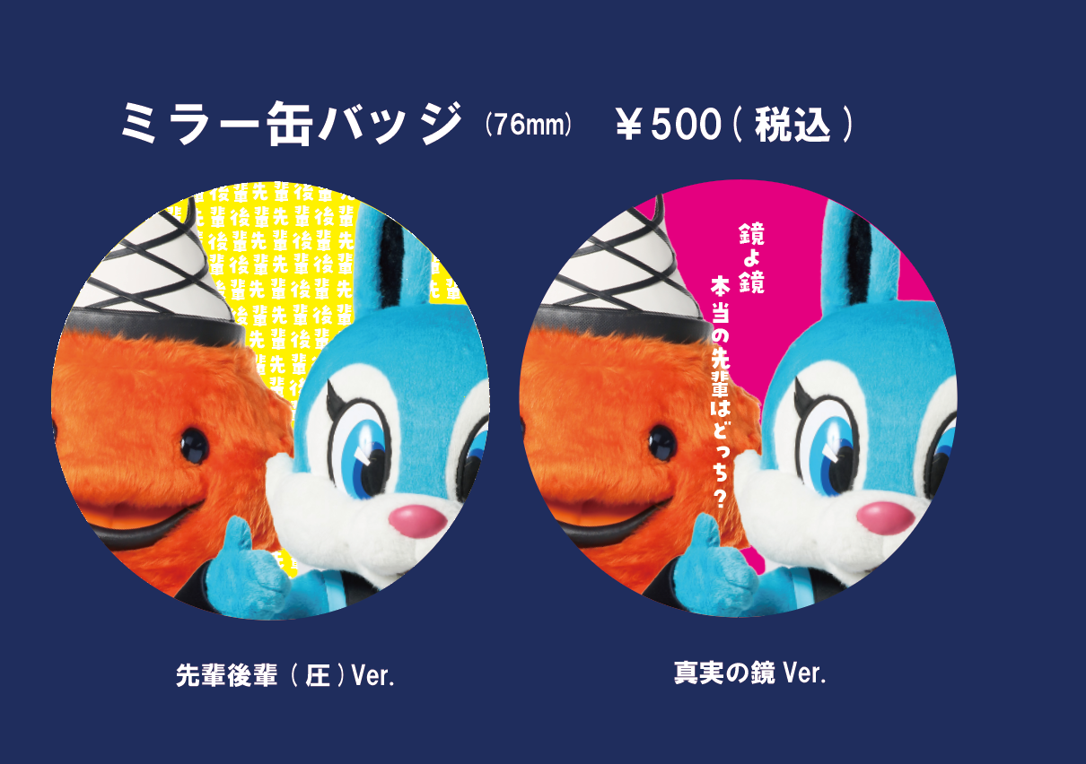 先輩後輩対決にちなんだ缶バッチミラーを販売! 数量限定なのでぜひお買い求めください。