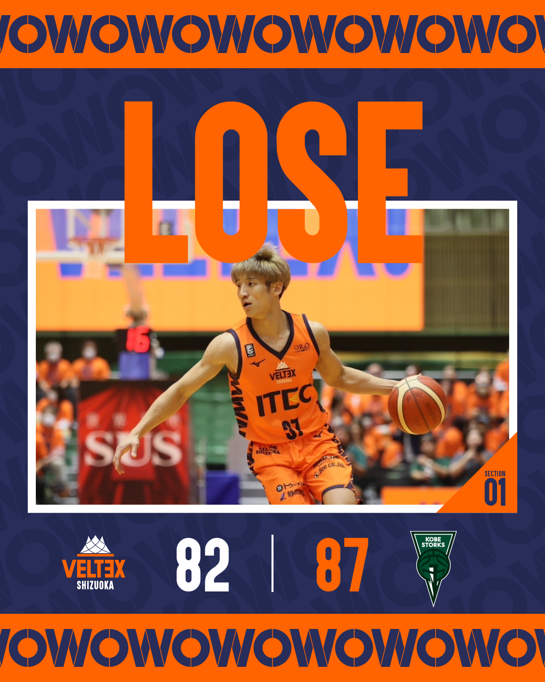 第4クォーター。神戸#10渡邊、#13道原の連続3ポイントを含む0-10のランを許し、リードを広げられる。それでも静岡は#7ブロープレーが立て続けに3ポイントを沈めるなど最後まで喰らいつくも、神戸#13道原の3ポイントが決勝点となり、最終スコア82-87で悔しくも開幕2連敗を喫した。