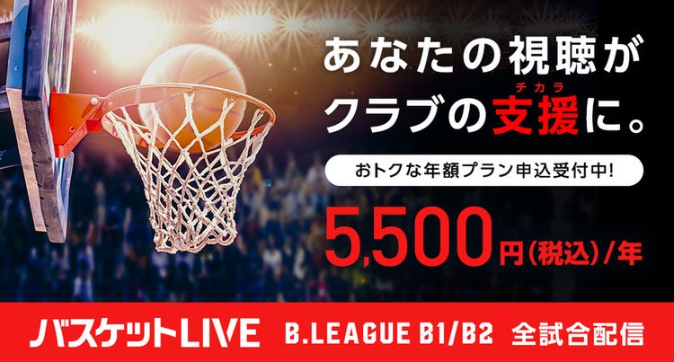 「バスケットLIVE」新規会員登録でクラブを支援しよう!
