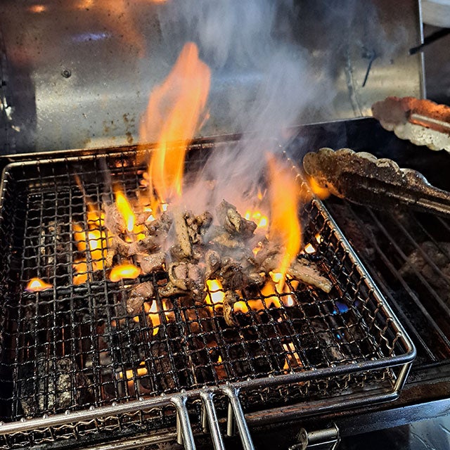 静岡県産黒毛和牛牛牛串:700円/牛タン串:600円/ハラミ串:600円/ネギ塩牛タン:700円/牛すじ煮込み:400円