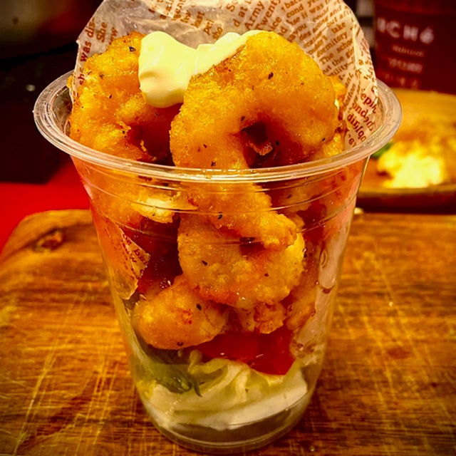 海老クリスピータルタル:600円/ほたてクリスピータルタル:600円/いかクリスピータルタル:500円/ベーコンソーセージクリスピー:500円/クリスピーチキン:500円/揚げじゃがバター:400円/シーフードのトマトスープ:700円