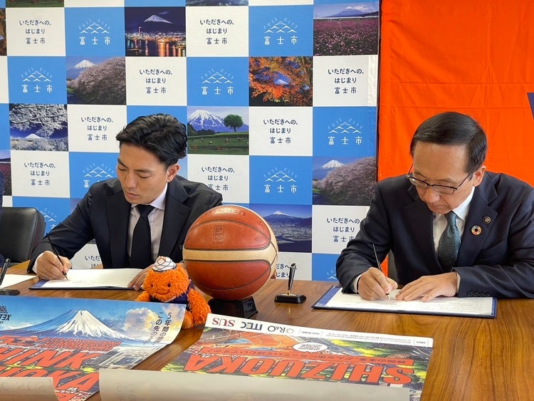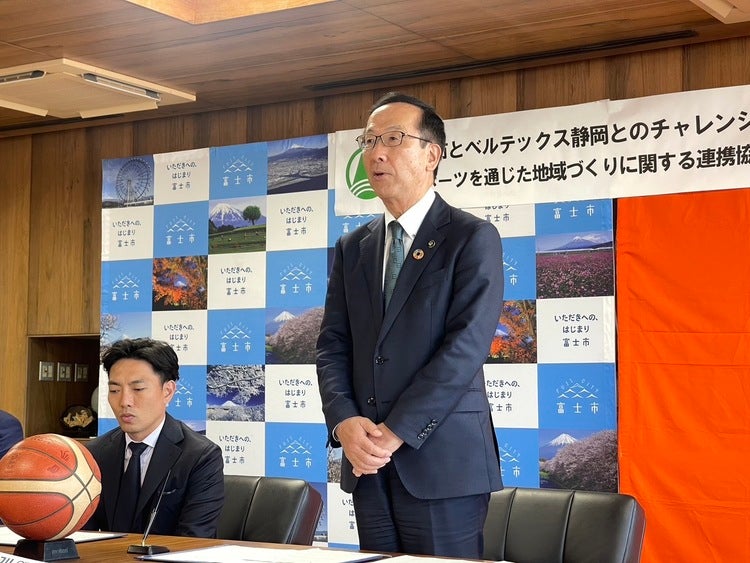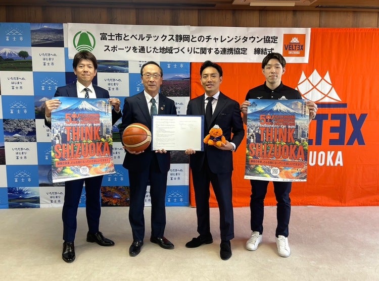 ベルテックス静岡では、富士市にて、2019-20シーズンより3シーズンにわたり静岡県富士市にあります、富士川体育館にてB3ホームゲーム(3シーズンで8試合)の実施や、富士市ゆかりの選手による市長への表敬訪問などを実施していることから、令和5年度より連携協定に関する協議を進め、今回「富士市とベルテックス静岡(株式会社VELTEXスポーツエンタープライズ)とのチャレンジタウン協定(スポーツを通じた地域づくりに関する連携協定)」を締結することとなりました。