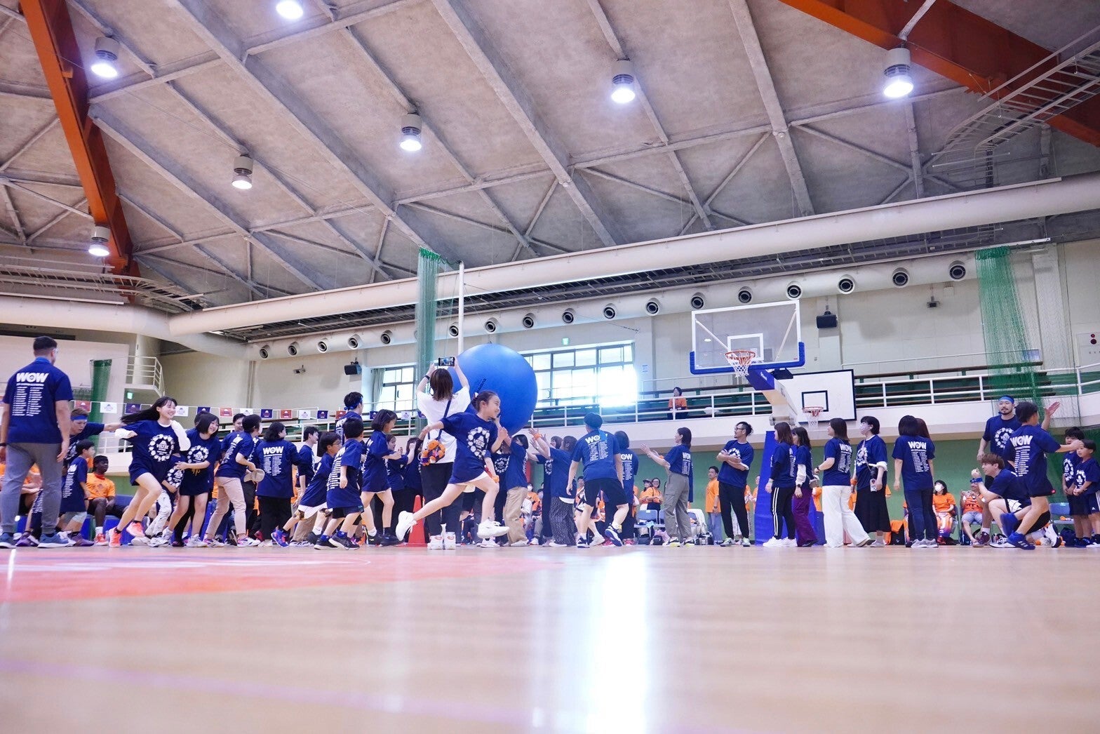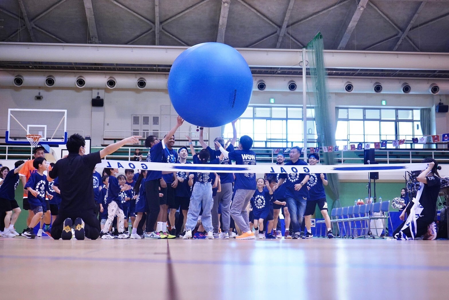 ファン感特別Tシャツを購入者の皆さまと協力して、大玉を押し上げコートを一周!