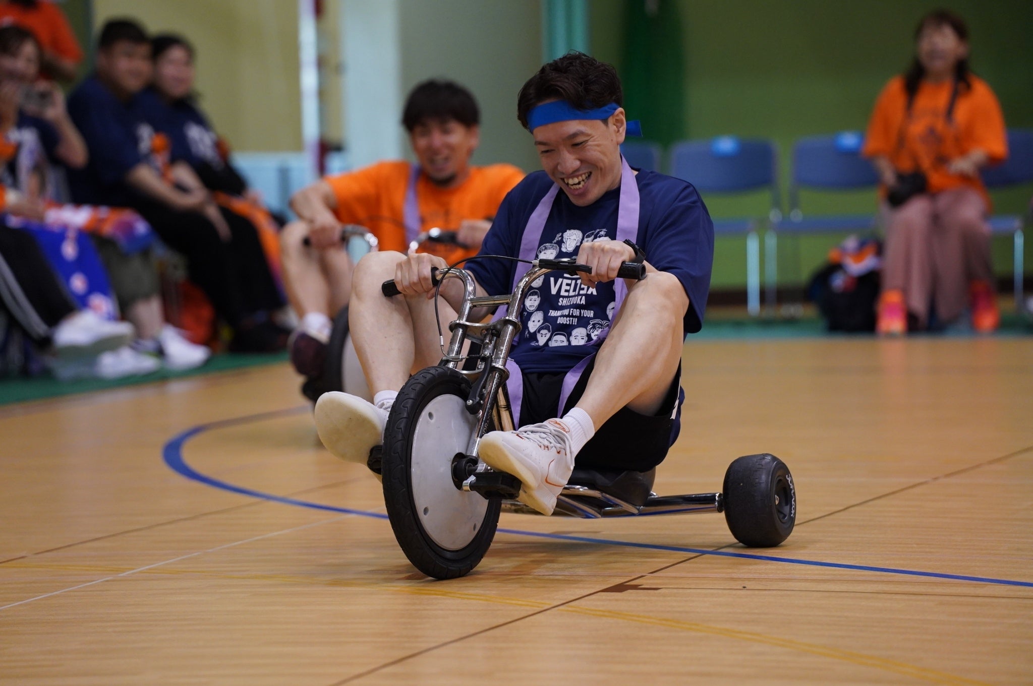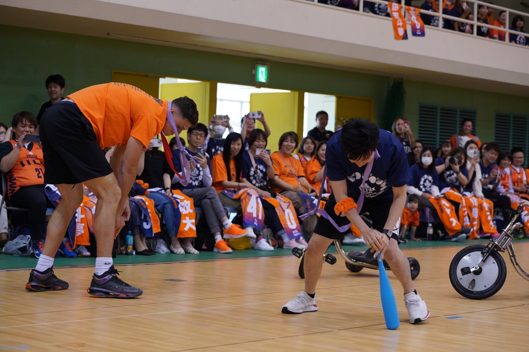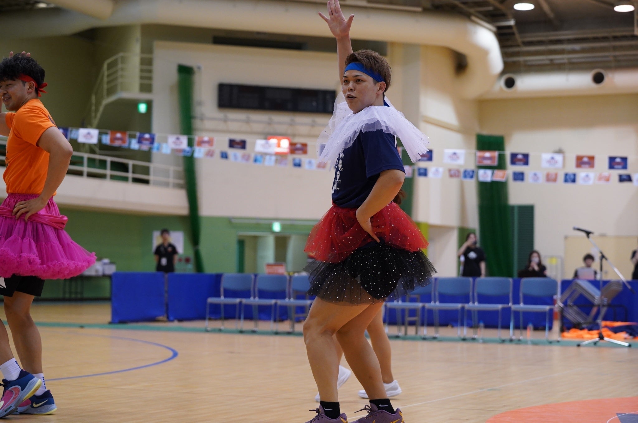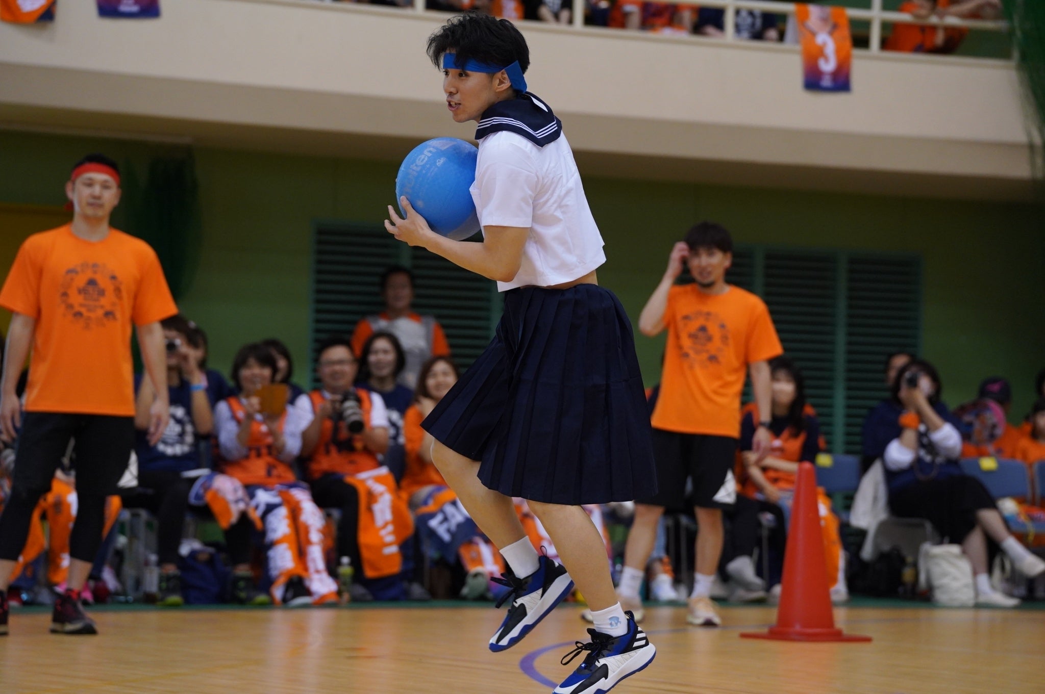 三輪車→ぐるぐるバッドレイアップシュート→背中ボール運び→飴玉探し→借り人競争→コスプレ早着替え3Pシュートと目まぐるしくシーンが変わっていった多(だい)障害物リレー。