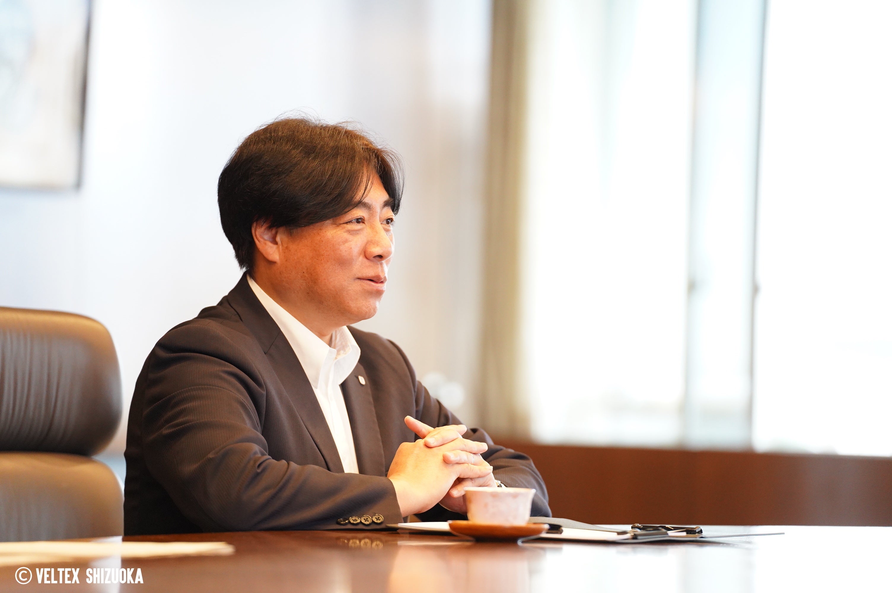 本日はお忙しい中お越しくださりありがとうございました。常日頃、町としてもスポーツを活かした街づくりということで様々な取り組みをさせていただいております。その中においてプロリーグが市内で展開されるということが本当にありがたいことです。間近にプロの皆様の技が迫ってくる、そういった体験ができるという我々の体育館もいろいろな構想を練りながらですが、ベルテックスさんにホームゲームを開催していただいてありがたいと思います。先ほどもおっしゃっていただいたように3勝1敗という成績で場所を活用していただいている立場としてありがたく感じております。スポーツということにおいては令和6年度から10年間に渡り沼津市スポーツ推進基本計画を策定させていただき取り組んでいます。市民の皆様ひとりひとりがスポーツに関わる、生涯スポーツ、昨今の社会問題、地域・社会の幸福度の健全化に取り組んでいるところでありますが、スポーツの魅力や力でこういったことを解決していこうとスタートした年でもあります。プロリーグを支えるということで体育館を活用していただけるということで我々の施作とマッチングしていると感じております。先ほど話の中にもありましたB2はなかなか厳しい世界ではありますがB1昇格に向けてこれからも取り組んでいく強い決意をいただきましたので我々もしっかりと応援させていただきたいと思います。さらに市民の皆さま方にベルテックス静岡の存在が沼津とともに歩んでいるということを認識いただけるよう戦略も練っていきたいと考えております。