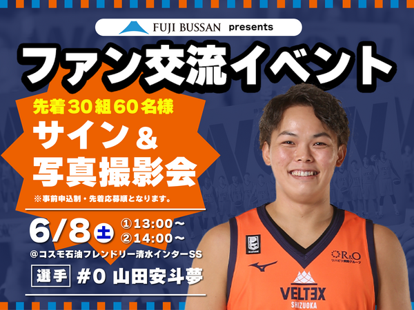 この度、ベルテックス静岡では、プラチナパートナーであるフジ物産株式会社様のご協力の元、サイン・写真撮影会を開催する運びとなりましたのでお知らせいたします。
