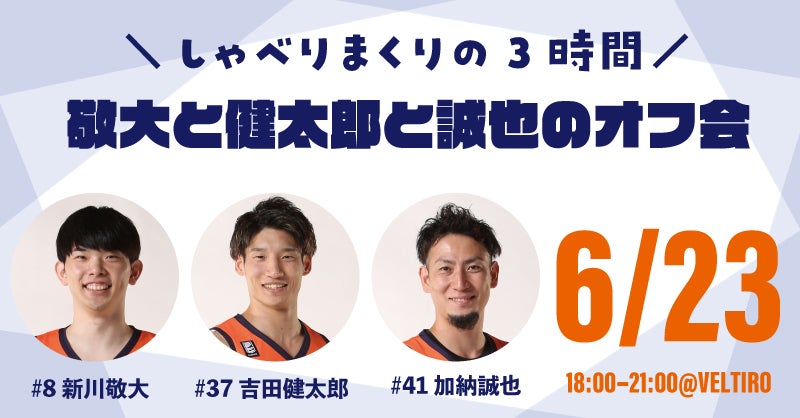 この度、新川敬大選手、吉田健太郎選手、加納誠也選手によるオフ会の実施が決定しました!