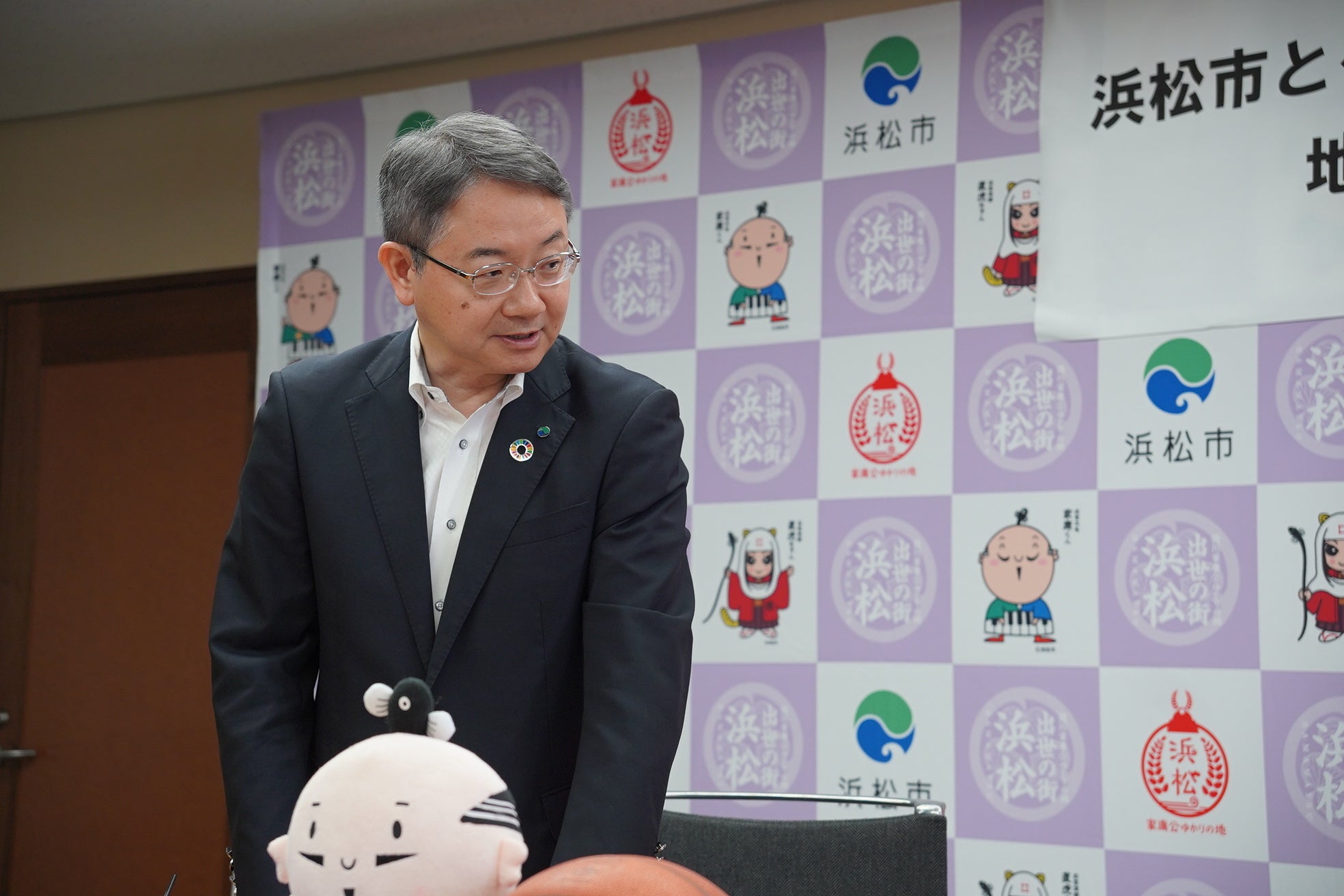 浜松は小さい頃からミニバスケットを親しんでいる子どもたちが非常に多い地域になりますので、この協定締結をひとつのきっかけとして、さらにバスケットボールの競技人口の増加、バスケットボールをする皆さんに元気になっていただきたいと思っておりますし、浜松市内で盛り上がるようなゲームを開催していただくことによって、観るスポーツとしてこの地域活性化にも貢献をいただけたらと思っております。