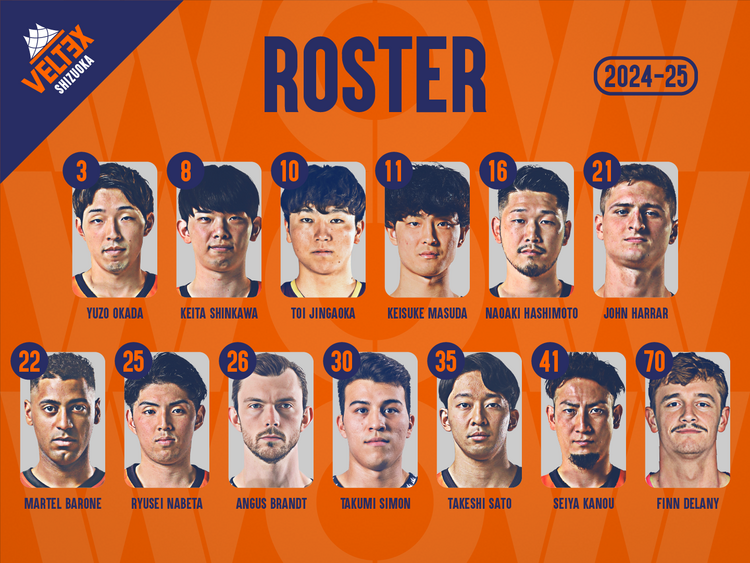 ベルテックス静岡2024₋25シーズン ロスターが決定いたしましたのでお知らせします。