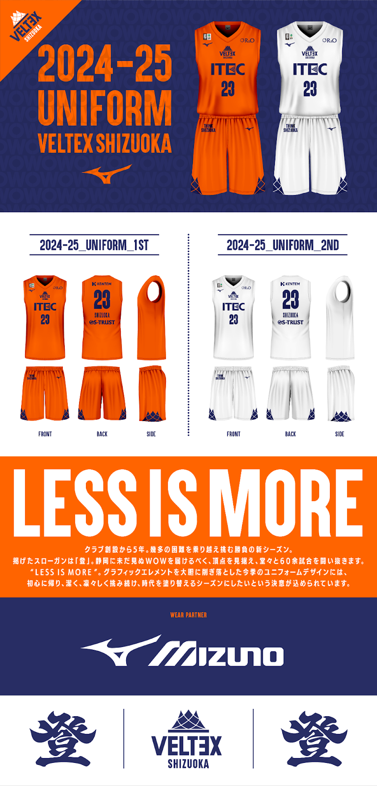 ユニフォームサプライヤーは、2023-24シーズンから引き続き Mizuno(美津濃株式会社)様にご支援いただきます。